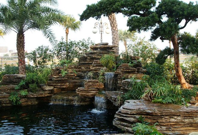 假山(shān)設計(jì)一(yī)般建在'§♣&水(shuǐ)池旁邊,兩者相(xiàng)輔相(xiàng)成,景觀相(xiàng)©σ£結合,相(xiàng)得(de)益彰。